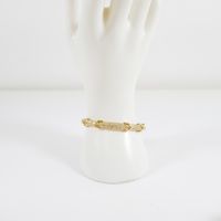 Bracelet jonc en or 750 mil, la partie supérieure ornée de 3 lignes de diamants, séparées et bordées par des chevrons (Diam intérieur : 5,9 x 5 cm; Larg : 0,6 cm environ). 28,7 g brut.
