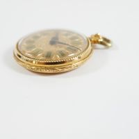 Montre de gousset en métal doré entièrement guilloché, boîtier rond (Diam : 32 mm), cadran doré à chiffres romain, TRESSA, mouvement mécanique.