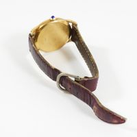 Montre en or 750 mil sur bracelet cuir usagé, boît