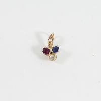 Pendentif trèfle en or 585 mil orné d'un saphir, d'un rubis et d'un diamant TA (bélière rehaussée d'un rose) (Dim : 1,3 x 0,7 cm environ). 1,1 g brut.