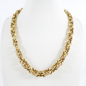 280 / 320 €Collier : en or 750 mil. à maillons forçat fantaisie (longueur : 56 cm). 7,1 g.