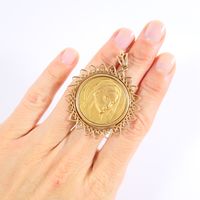 Pendentif-médaille religieuse : en or 750 mil. figurant le profil de la Vierge Marie dans un entourage ajouré, travail français (diamètre : 4,3 cm environ) (légères déformations). 9,4 g.