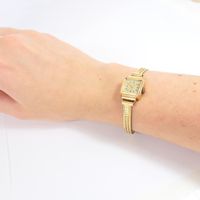 DERMONT, Bracelet-montre en or 750 mil. boîtier carré (Dim. : 15 x 15 mm environ), cadran doré à chiffres arabes, chemin de fer pour les minutes. Mouvement mécanique à remontage manuel. Signé et numéroté. Bracelet en or 750 mil. fermoir échelle à rabats. (Tour de poignet : 17 cm environ). 22 g. brut.