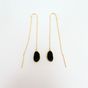 Paire de pendants d'oreilles en or 750 mil. composés d'une fine maille forçat retenant une plaque ovale d'onyx en serti clos. (Hauteur : 5 cm environ). 1,3 g. brut