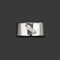 CHAUMET, modèle « Lien » : Bague bandeau en or gris 750 millièmes, le centre décoré d'un lien orné de diamants ronds de taille brillant. (Usures) Signée et numérotée. Tour de doigt : 52,5 environ Poids brut : 10,9 g. Avec une pochette de la Maison CHAUMET.
