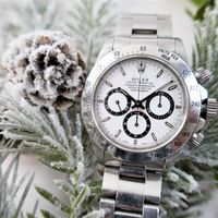 ROLEX, Daytona : Montre de forme ronde chronographe. Vers 1999. Référence 16520. Boîtier en acier signé et numéroté A140367. Cadran blanc à trois sous-compteurs, index et aiguilles luminescents. Mouvement mécanique à remontage automatique signé. Calibre 4030. Diamètre : 40 mm. Bracelet Oyster en acier avec boucle déployante signée, taille : 17 cm environ. Sans écrin ni papiers.