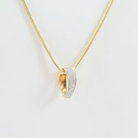 Chaîne : en or jaune 750 mil. à maille tubogas retenant un pendentif ovale ajouré en or jaune 750 mil serti d'un pavage de diamants brillanté. Fermoir mousqueton. (Longueur : 42 cm - hauteur du pendentif : 1,5cm). Poids brut : 6,1g.