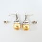 Paire de pendants d'oreilles : en or gris 750 mil. retenant chacun une perle de culture dorée (diamètre : 9 mm environ) rehaussée d'une spirale sertie de petits diamants taille brillant (hauteur : 2,2 cm). 4,6 g. brut.