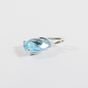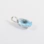 Pendentif : en or gris 375 mil. retenant une topaze bleue taille poire facettée (dimensions : 1,7 x 0,8 cm). 1,1 g. brut.