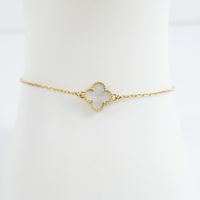 Bracelet en or 750 mil à maillons forçat limé orné du trèfle rehaussé de nacre signé VCA "Sweet Alhambra" (Dim trèfle : 9 mm ; Long : 17,5 cm). 1,8 g brut.