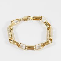 Bracelet en or 750 mil. À maille fantaisie dont certaines serties de pierres imitations blanches. (Longueur : 21 cm environ) (Largeur : 0,8 cm environ). 30,1 g. brut.