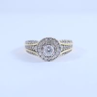 Bague : 2 ors 750 mil. sertie d'un diamant taille brillant de 0,30 ct environ numéroté IGI 459106224, entouré et épaulé de diamants taille brillant et 8/8 (TDD : 64) (diamètre : 9,7 mm environ). 6,3 g. brut