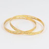Deux bracelet joncs : à motif floral ajouré. Travail français. (Largeur : 7 cm environ). 28,7 g. brut.