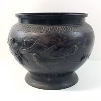 Cache-pot en bronze, à décor en relief d'oiseaux b
