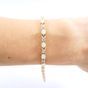 Bracelet ligne : 2 ors 750 mil. alterné d'opales et de motifs croisillons sertis chacun d'un diamant taille brillant (longueur : 18 cm environ) (largeur : 4 mm environ) (2 opales cassées). 7,9 g. brut