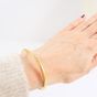 Bracelet rigide ouvrant : en or 750 mil., avec huit de sûreté (dimensions : 6,6 x 5,5 cm ; longueur : 18 cm) (très légers chocs). 10,4 g.