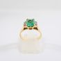 Bague : en or 750 mil. ornée d'une émeraude rectangulaire à pans coupés de 1,20 carat environ, épaulée de 2 diamants taille baguette, travail français (TDD : 53,5) (dimensions pierre : 7,1 x 6,2 x 4 mm environ). 3,9 g. brut