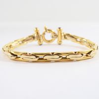 Bracelet : en 2 tons d'or 750 mil. à maille haricot stylisée, fermoir orné de 4 cabochons de saphir (longueur : 18,5 cm environ) (largeur : 6,7 mm environ) (légères égrisures et petits éclats). 21,6 g. brut