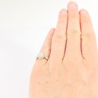 Bague : en or jaune 750 mil. à chaton circulaire pavé de diamants taille brillant, et épaulée de deux lignes de diamants taille brillant. (0,05 carats - 0,02 carats - 0,01 carats). (TDD : 50). Poids brut : 2,2g