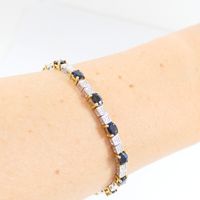 Bracelet ligne articulé : deux ors 750 mil. à maille alternée de saphirs taille ovale et de petits diamants taille brillant. Fermoir cliquet et huit de sécurité. (Tour de poignet : 17,8). Poids brut : 14,4g