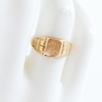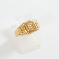 Bague chevalière en or 750 mil (Larg : 8 mm ; TDD : 52) ( Accidents, chiffrée). 1,7 g.