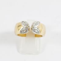 Bague ouverte en or 750 mil bordée à ses extrémités de 2 motifs diamantés (Larg : 8 mm ; TDD : 55). 15 g brut.