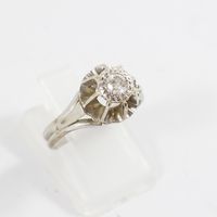 Solitaire en or gris 750 mil orné d'un diamant (environ 0,15 ct) en serti illusion (TDD : 49,5). 3,1 g brut.