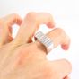 Bague : en or gris 750 mil. sertie de diamants taille brillant (TDD : 57) (dimensions : 20,1 x 8,9 mm environ) (petits éclats, petits fêles à la monture). 12,7 g. brut