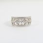 Bague bandeau : en or gris 750 mil. à décor ajouré et ciselé serti de diamants taille brillant (TDD : 54) (largeur : 8,8 mm environ). 7 g. brut
