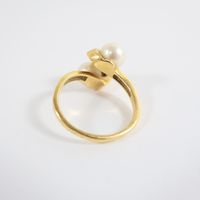 Bague "Toi et Moi" : en or 750 mil. poli et amati sertie de 2 perles de culture de 6,7 et 6,8 mm environ, travail français (TDD : 55) (largeur : 15,5 mm environ) (petit fêle à la monture). 5,4 g. brut