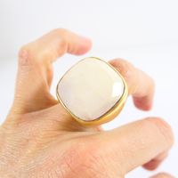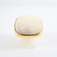 Importante bague : en or 750 mil. ornée d'une pierre décorative écrue avec des nuances violettes taille coussin facettée (TDD : 51,5) (dimensions : 28 x 28 mm environ). 36 g. brut