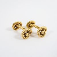 Paire de boutons de manchettes : en or 750 mil. à décor de nœuds de cordage, pouvant faire penser à un modèle de chez HERMES (longueur : 23 mm environ). 16,9 g.