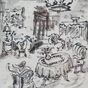 André HAMBOURG (1909-1999) "Vue du bureau de Himmler" Dessin à l'encre et lavis, sur un document de l'administration allemande. Signé, avec annotation : "Dans le bureau personnel d'Himmler en mai 1945, Berchtesgadener Hof (c'était pas spécialement jojo!!!)". Dimensions (à vue) : 29 x 21 cm. (Feuille déchirée sur le côté) (Encadrée)