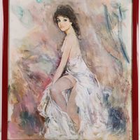 Bernard CHAROY (1931) "Le lever de Jocelyne" Gouache et aquarelle sur papier. Signée en bas à droite. Dimensions : 57 x 50 cm. (Encadrée)
