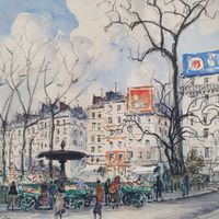 FRANK-WILL (1900-1951) "Paris, Place Pigalle" Aquarelle et crayon. Signée en bas à droite et située en bas à gauche. Dimensions (à vue) : 18 x 22 cm. (Encadrée)