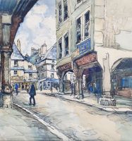FRANK-WILL (1900-1951) "Vue du vieux Dinan" Aquarelle sur papier. Signée en bas à gauche et située. Dimensions (à vue) : 48 x 64 cm. (Encadrée)