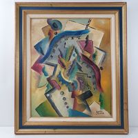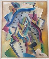 Patrick LEROY (1948) "Composition aux mécanismes d'horlogerie" Huile sur panneau. Signée en bas à droite. Dimensions : 61 x 50 cm. (Encadrée)