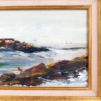 Raymond SCUILLER (1930-2003) "Mer agitée" Huile et gouache sur papier. Signée en bas à droite. Dimensions (à vue) : 23 x 32 cm. (Encadrée)