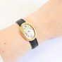CARTIER, Baignoire. Montre de forme ovale. Référence 1954. Boîtier en or jaune 750 millièmes signé et numéroté 307933CE, gravure « Alice » au dos. Cadran blanc à chiffres romains, aiguilles glaives bleuies. Mouvement quartz. Dimension : 22 x 31 mm environ. Bracelet en cuir (*) signé avec boucle ardillon en or jaune 750 millièmes signée. Poids brut : 31,94 g. Sans écrin ni papiers.