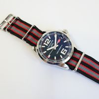 CHOPARD, Gran Turismo XL. Montre d’homme ronde chronomètre. Référence 16/8997. Boîtier en acier numéro 1119325. Cadran noir, graduation de la minuterie sur rehaut. Aiguilles et index luminescents. Guichet date à 3h. Mouvement mécanique à remontage automatique. Calibre signé base ETA. Diamètre : 45 mm environ. Bracelet NATO non signé. Boîte, surboîte, documents et accessoires.