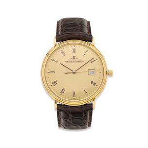 CHOPARD Montre de forme rectangulaire. Référence 2024. Boîtier en or jaune 750 millièmes signé et numéroté 65703. Cadran doré texturé à index appliqués (verre fêlé à changer). Mouvement mécanique à remontage manuel signé base ETA. Dimensions : 26 x 32 mm environ. Bracelet en cuir (*) rapporté et boucle ardillon non signée. Poids brut : 30,00 g. Sans écrin ni papiers.