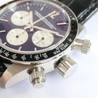 Chronographe Suisse. Continental Gransport. Montre de forme ronde chronographe. Boîtier en acier signé et numéroté 522-2-001518. Cadran noir à trois sous- compteurs. Index appliqués et aiguilles luminescentes. Mouvement mécanique à remontage automatique. Diamètre : 45 mm environ. Bracelet en cuir (*) signé et boucle ardillon en acier signée. Sans écrin ni papiers.