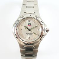 TAG HEUER "Kirium", réf. WL1214 : Bracelet-montre en acier, boîtier rond, lunette tournante graduée, cadran argenté rayonnant, index point luminescents et chiffres arabes appliqués, guichet dateur à 3H, mouvement à quartz, bracelet et boucle déployante siglée et signée en acier, signé et numéroté (diamètre : 33 mm environ) (longueur : 19,5 cm environ).