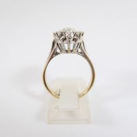 Travail français des années 1960 : Bague marquise en or gris 750 mil. sertie de diamants taille brillant de 0,06 à 0,45 carat environ (1,20 carat environ au total) (TDD : 55) (dimensions : 18,3 x 11,3 mm environ) (rhodiage à prévoir). 5,8 g. brut