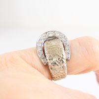 Bague "ceinture" : en or gris 750 mil. texturé sertie de diamants taille 8/8 (TDD : 46) (trace de mise à grandeur). 5,6 g. brut.