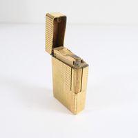 DUPONT : Briquet en métal doré à décor de pointe de diamant, signé et numéroté (dimensions : 5,8 x 3,5 cm environ) (usures).