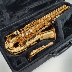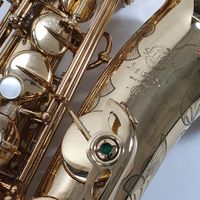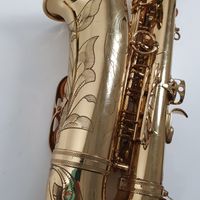 Saxophone alto SELMER Portant l’estampille « Henri Selmer Paris…Made in France, R », numéro M138277, en laiton verni, gravé de motifs floraux. Avec boîte Selmer, accessoires et 2 becs Selmer. (Bosses, rayures, tampons à revoir, à réviser) Expert : Quentin MADON