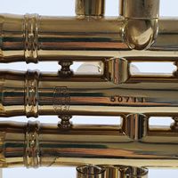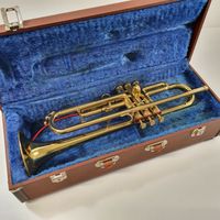 Trompette GAUDET Portant les estampilles « Gaudet » et « A.COURTOIS Amboise », numéroté 50711, en laiton verni et métal chromé. Avec boîte (usée) et accessoires. (Rayures, usures, bosselée, piston à revoir) Expert : Quentin MADON