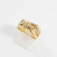 Bague bandeau ajourée en or 750 mil à décor d'étoi