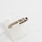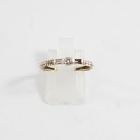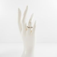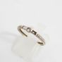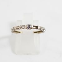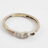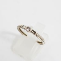 Bague perlée en rhodié 750 mil centrée d'un diamant (environ 0,08 ct) épaulé d'un diamant baguette (manque 1 diamant) signée MAUBOUSSIN "Amour je t'aime" (Larg : 2 mm ; TDD : 53). 1,8 g brut.